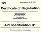 2019年8月31日,美國石油學會向我公司再次頒發API Specification Q1證書(Registration No.Q1-2894)。